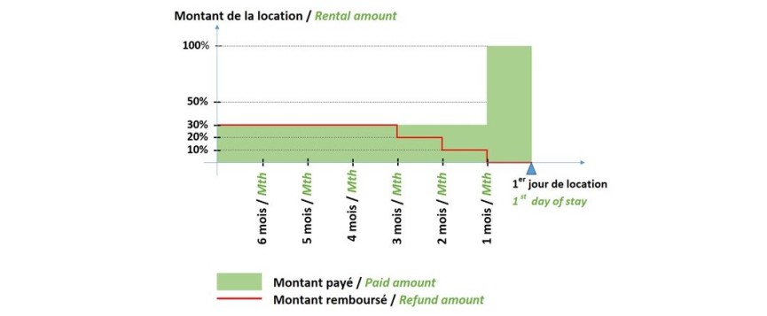 In the event of cancellation of the rental, the amount may be refunded to the tenant depending on the date of cancellation.